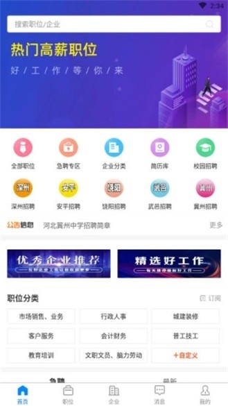 衡水招聘网是衡水市人力资源有限公司专为河北当地用户打造的招聘求职app,软件上可以找到非常多的招聘信息和职位信息。还有超多知名企业入驻平台在这里发布岗位招工的信息内容供你浏览了解哦,还能直接与hr在线沟通进行交流哟,快来下载试试吧!