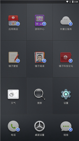 OS中的主题资源 锤子桌面启动器SmartIVO启动器是一个非常好用的桌面美化工具,使用这款软件可以将自己的手机系统进行优化处理。而且在锤子的屏幕上显示的是文字的样式,并且还能设置字体以及图标等功能哦,感兴趣的小伙伴快来下载吧!