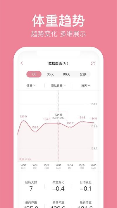 1、智能提醒:自定义个人体重目标,自动提醒您按时完成体重目标。
