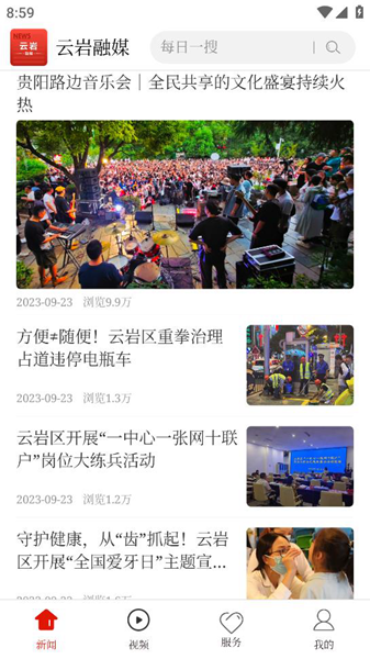 云岩融媒APP为本地用户提供一个全方位的服务平台,涵盖了新闻、政务等多个领域的内容。它不仅提供了丰富的资讯信息和便捷的操作方式,还让市民们能够轻松地获取到最新的本地动态或重要事件!