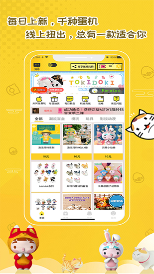 二次元的玩具商城,盲盒商品品类众多,随时随地想抓就抓,惊喜多多哦~