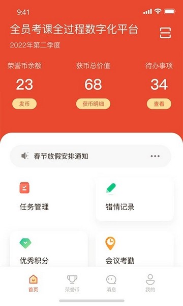 全员考课app是一个非常实用的在线教育类应用程序;它包含了全面的校园管理功能、便捷的服务体验以及强大的师资力量。该应用程序提供了一系列专业且易于使用的功能和服务。通过这个系统您不仅可以随时随地获取最新的学校通知及学生活动安排,