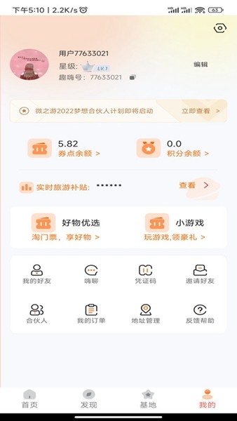 4、“我的”页面里有订单管理、收藏夹设置、评价系统等等一系列实用性工具帮助你的旅途增添乐趣。