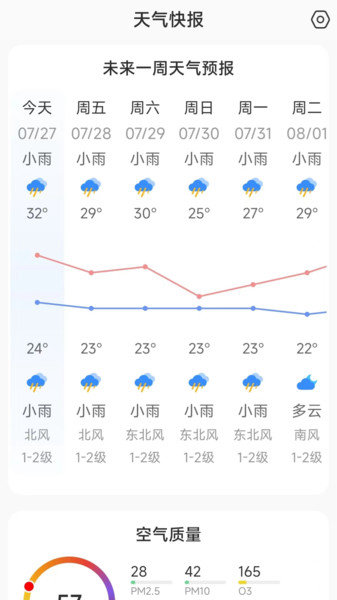 天气快讯是专门给广大用户朋友们打造的大型生活实用类产品,丰富功能搭配上简洁页面设计其中,轻松查询到当地天气情况等等。
