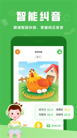支持实时对话打分及纠音系统,帮助孩子巩固记忆,加深对英语的理解和运用。