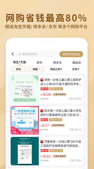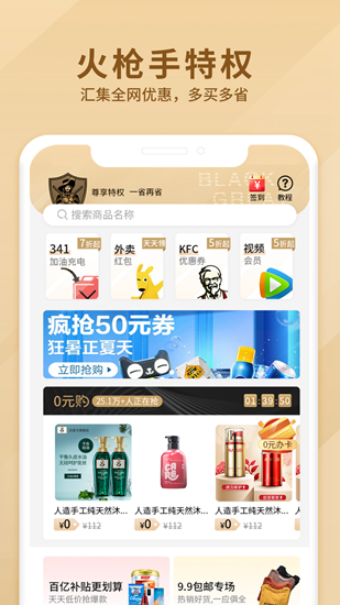 火枪手特权app是火爆的省钱购物软件,在这里汇聚了众多商品优惠券供你领取使用哦,不仅可以进行低价购买还能享受折扣哟,让你买到就是赚到,每天还有限时秒杀活动等你参与哦,有需要就下载火刃手特权app吧。