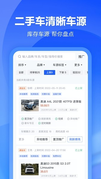 【查找】按车型、里程、保值车、品牌等多种排序条件精准筛选符合需要的品牌车源。
