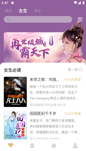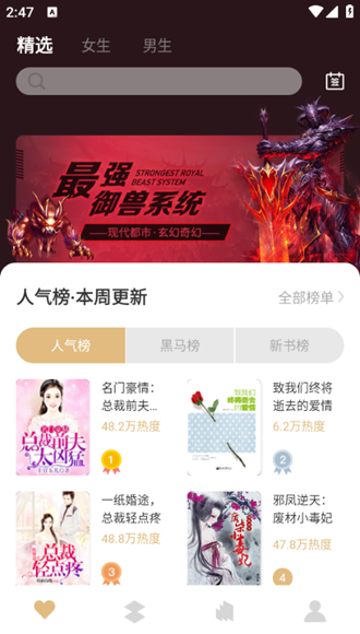大熊免费小说app是款全新的阅读平台,在这款app中用户可以观看到各种优质的小说内容哦,而且我们还可以在这里找到各种各样的小说资源哟,喜欢的小伙伴快来下载试一试吧!