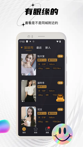 1.【缘分速配】智能算法为你推荐身边的TA,只需要1分钟就能开始甜蜜恋爱吧;