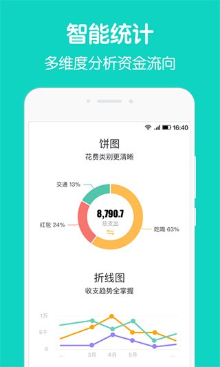 8、【报表清晰】直观展现收支趋势,统计周期性消费情况。