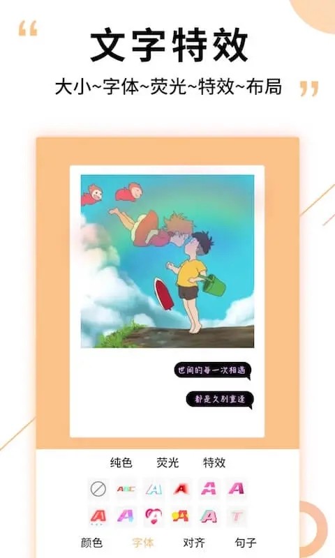 图片加文字精灵是款简单的图片编辑app,可以对图片中的文字添加特效、贴纸以及滤镜等等设置哦!让你的照片变得更加炫酷有趣,还可以给照片加上各种文字背景效果哦!喜欢就来绿色资源网下载吧!