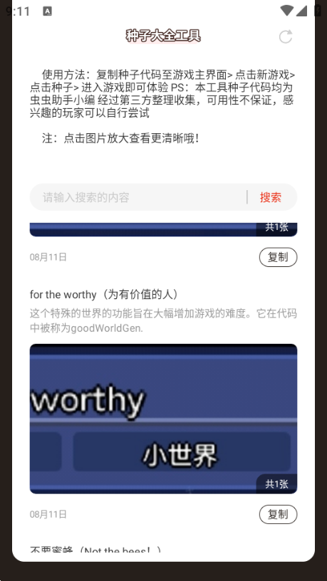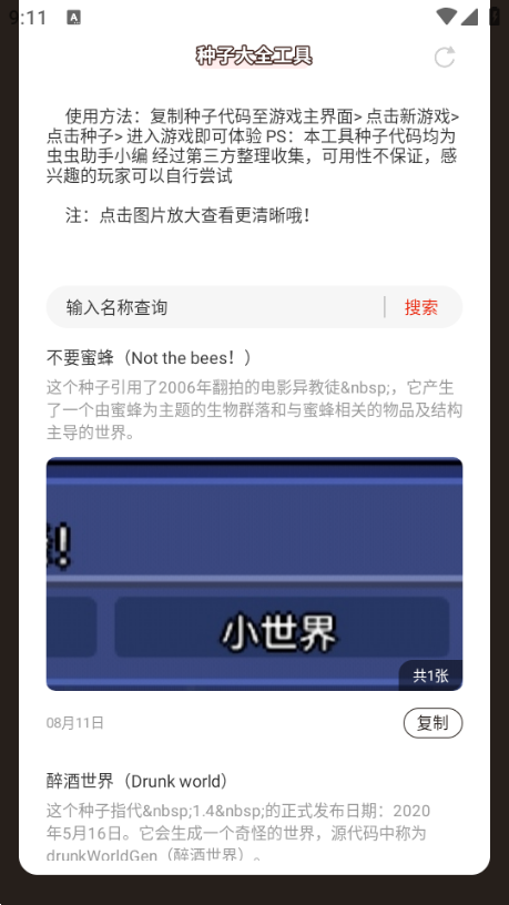 泰拉瑞亚种子大全工具是虫灰助手app是专门为玩家打造的,这里提供了丰富的资源信息和各种工具。大家可以根据自己的需求来使用,而且还可以在这里进行地图查询等功能;同时还可以在线了解更多游戏内容哦!