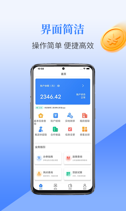 二连浩特公积金信息管理自己公积金app是为市民提供便捷的住房使用服务的应用,用户可以随时随地查询自己的公积金账户状态、缴纳明细等。同时它还提供了丰富的功能和实用性。通过该软件你不仅能快速了解个人贷款计划、办理业务指南等等操作流程,而且还可以享受到即时消息通知以及网上办款提醒等多项贴心的服务体验。