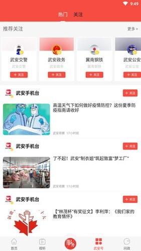 冀云武安app是专为武安市的市民打造的新闻资讯阅读软件,在这里可以第一时间了解当地发生的大小事。这里还有非常丰富的便民生活服务功能哦,用户能够在线进行政务办理、缴费等操作了哟。有需要的用户欢迎下载体验。