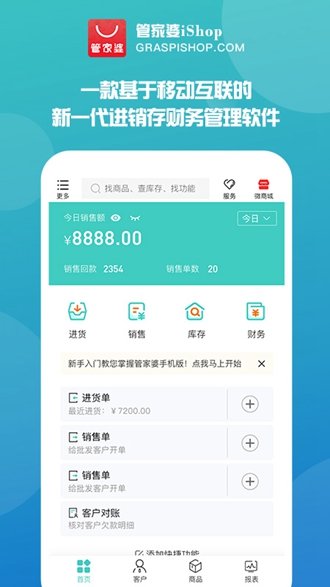 进销存云端同步:支持电脑端、网页端多终端无缝切换;自定义权限设置,独立登录即可做生意;可视化的报表分析助力营销决策。