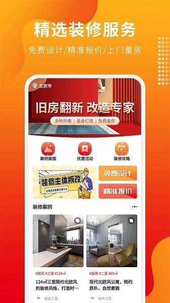 提供从设计、施工、施工、验收的一整套完整的服务体系,包括但不限于报价清单、施工记账、材料清单及施工记录查询与计算、装修预算规划指导、装修知识普及与分享交流、施工过程评价与反馈、装修工艺流程图文攻略、施工图纸预览、装修预算计划制作指南、建材家居建材交易市场销售渠道推广系统、家装装修建材交易平台产品展示系统、家装设计案例库共享平台、软硬结合装修案例数据库互助社区、装修案例大数据分析中心、软硬件结合装修案例库对接平台、家装设计案例库对接平台、软硬结合装修案例数据库互帮互助社区、装修案例数据统计分析平台、家装设计案例库对接平台、家装设计师合作平台、家装设计师合作平台等。