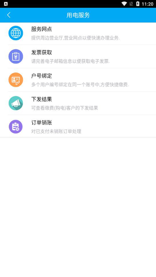 为满足用户在手机上自助办理业务而设计的一款手机客户端APP,它能实现随时随地的办电、查看停电公告和欠费清单以及对账单详情及购电记录分析与统计的功能。使用本APP后即可享受到便捷式交电费充值服务(支持多种方式)―√通过人脸识别实名认证登陆;可绑定银行卡号并提供个人账户余额作为凭证或电子发票下载打印等等方便快捷实用。