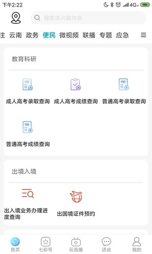 2.“七彩云端专门为云南省用户所开发,包括新闻、直播、电视、报刊、论坛,并提供各类便民服务的移动客户端。
