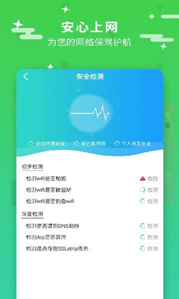 安全扫描:利用先进的深度学习技术自动检测并扫描所有已知的Wi-Fi热点,确保数据安全。