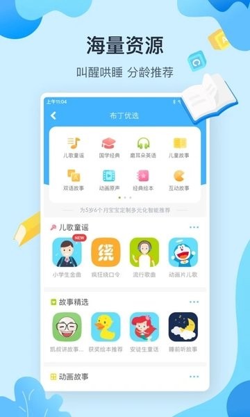 布丁机器人提供了多种互动工具进行应用场景设置,比如定时开关机、儿童游戏、儿童故事等实用功能,