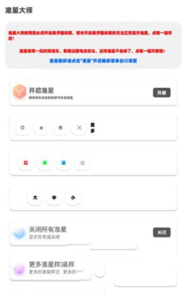 准星大师一款超级实用的支持对游戏进行准子的辅助类APP,软件收录了超多的准星样式可以随意更换设置自定义调整画质更加好看,还能够使用其他工具帮助您在游戏中更好的完成各种操作。