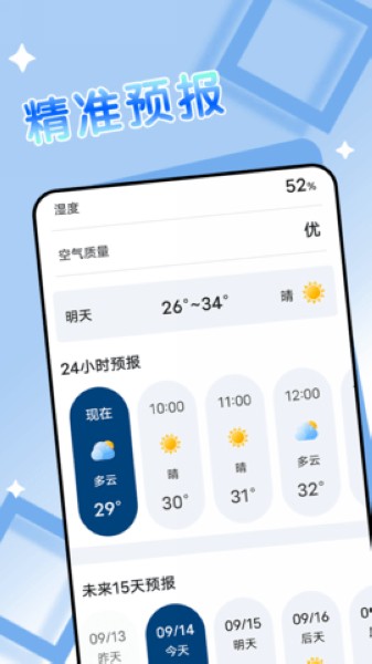 全面的天气资讯分享:除了基本的天气浏览之外,应用还提供了一些实用的功能模块,如旅游攻略推荐、运动健身指南等,增强用户的生活乐趣和参与度。