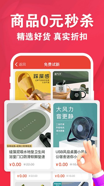 诸多特价低价包邮商品任你拿,有着限时秒杀、满减优惠、新人0元购等多样化的功能模块供你免费开启畅享品质生活。
