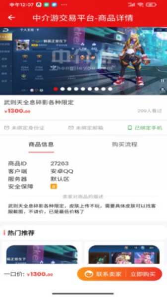 中介游让每个人都可以放心交易,这里有非常多的游戏道具提供给大家选择购买哦,而且平台上所有的道具都是经过严格鉴定的,绝对安全可靠。在买卖双方之间也能够进行交流互动,也可以在线联系客服来为你解决疑惑了。同时还能查看其他人发布的各种动态信息,欢迎有需要的朋友下载使用!