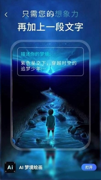 AI梦境是一款AI照片编辑器,通过人工智能图像处理技术,能够实现对各种照片和图片内容的自由调整与修改;基于先进的自然语言处理算法,它能够帮助您快速、准确地将您的创意转化成高质量的作品。