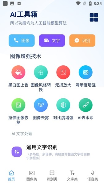 AI工具箱app是一款安卓手机实用工具合集软件,软件中有着海量的实用功能等你体验,用户可以根据自己的需求进行选择使用。操作简单易上手,免费无任何收费项目内容满足你的日常需要!对软件感兴趣的话不妨点击下载试试吧~