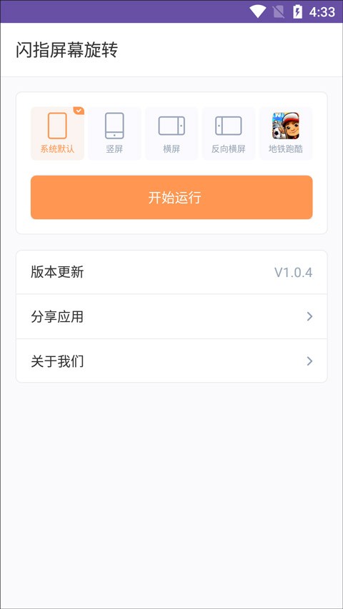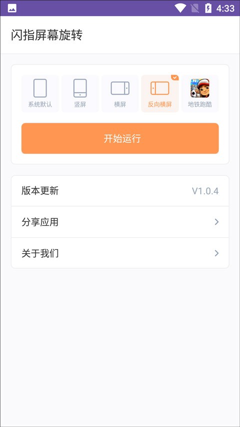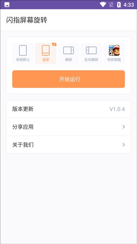 闪指地铁跑酷横屏玩是一个不错的手机自定义设置工具,软件功能强大全面。用户可以自由的进行各种屏幕旋转和强制旋转操作;还有多种不同模式供玩家选择!有需要的用户赶快来下载吧