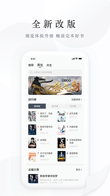 1、界面设计简洁明快,让用户更好地找到所需的内容。2、提供各种分类标签供用户浏览查看:玄幻奇异小说、都市小说、武侠仙侠、青春校园小说、穿越架空小说、惊悚悬疑小说、历史军事小说、耽美同人小说、官场权势小说、科举漫画、经典图书等。3、拥有海量的小说库涵盖各种题材与风格,确保每位用户都能迅速发现心仪的作品并开始阅读。4、内置护眼模式,让您的眼睛在疲惫的情况下依然能轻松享受阅读的愉悦。