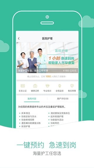 10“一号护工”所有服务均由官方权威机构或服务机构负责培训,确保每一个服务人员都具有正规资质。
