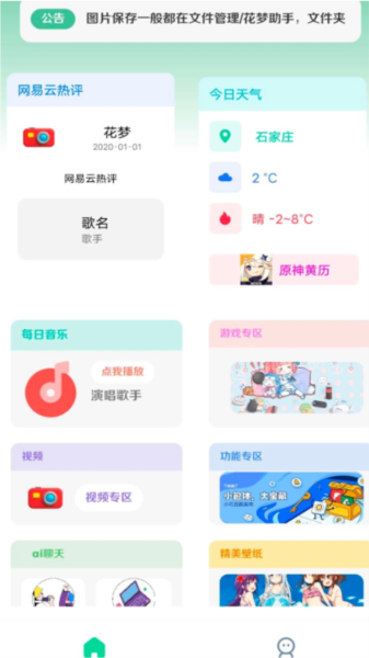 花梦助手适合多功能的手机工具合集,这里有各种实用功能等你来体验,可以轻松切换不同的软件和插件使用,支持在线制作桌面壁纸、锁屏等等操作。还可以将图片设置为桌面上的背景或应用图标哦,让你在手机上也能享受到美化的视觉盛宴。欢迎感兴趣的朋友下载使用!