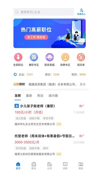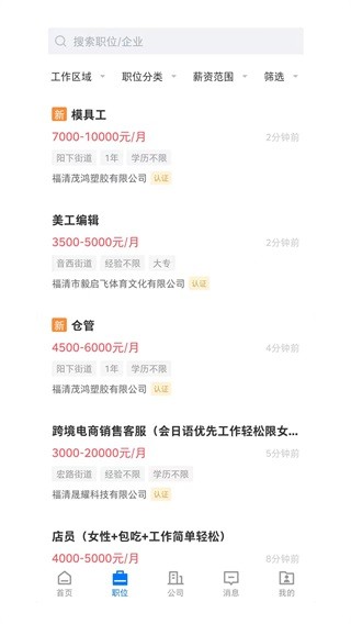 福清直聘是福建省香州市当地人才招聘网站,是为广大求职者提供海量、真实可靠的招聘信息的应用。公司通过严格审核机制对企业进行严格审查,杜绝虚假招聘信息。