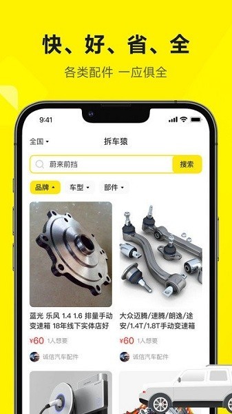 拆车猿是款相当方便的手机汽车配件app,通过开启用户们可以快速找到超多的汽车配件。软件用法和简单适合大家进行选择体验后即可轻松在线购买到自己喜欢的汽车配件产品内容!想要试试这类工具的朋友不妨速速下载吧