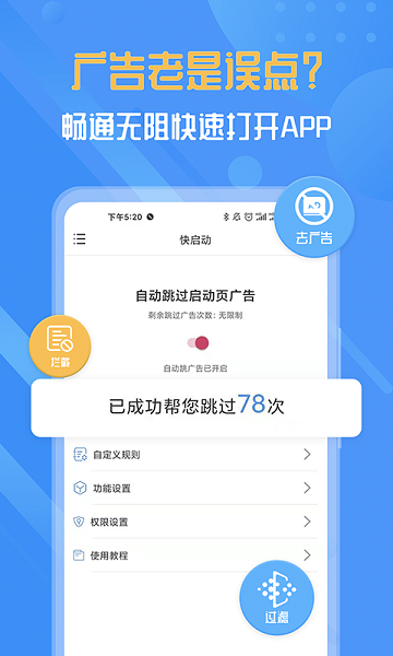快启动是款广告拦截器类型手机app,一款超级好用的去广告神器。软件功能强大且免费使用方便简单,让你可以轻松设置各种不同模式来开启自动操作!感兴趣的用户快来下载体验吧