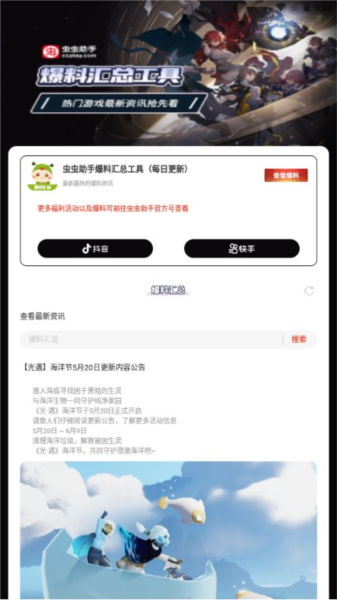 虫毒助手爆料汇总工具是一个非常好用的爆料分析和辅助软件,用户可以根据自己手机的配置来选择最适合的爆料信息进行了解。并且还有海量的爆料资讯内容供玩家们自由浏览哦,有需要的朋友们欢迎前来下载使用!