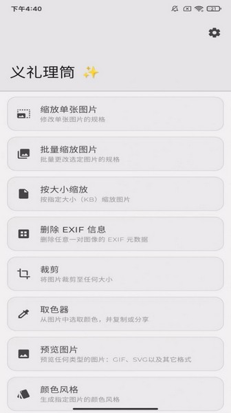 义礼理筒是款简单好用的手机工具箱app,开启之后我们可以快速获取到我们的各种信息和图片内容。软件用法也比较简单适合用户们进行使用体验哦,想要试试本款软件的朋友不妨速速下载吧!