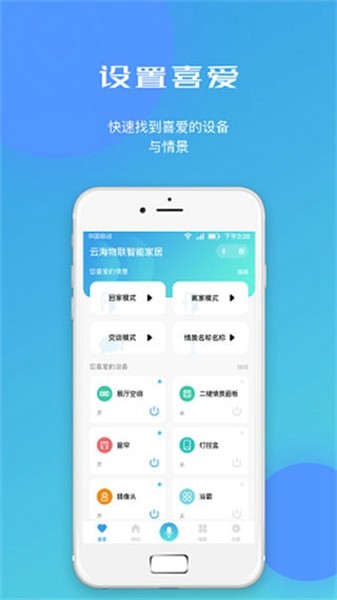 云海物联是款智能家居平台,提供智能门锁设置与权限分配及授权给用户使用的手机APP;同时支持对智能插座进行在线配置(如空调、热水器、洗衣机等),让您尽情享受舒适、舒适的居住环境。
