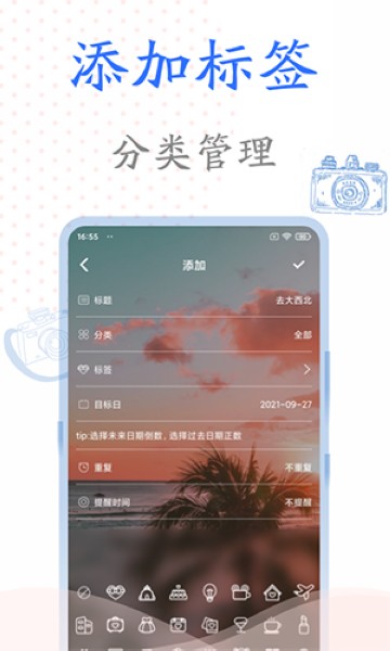 内置了个性化的主题选择器以满足用户对不同类型的日子的需求,让使用更加灵活多彩。