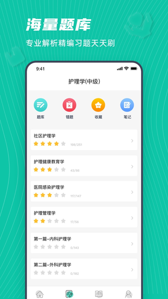 学护士,护理职业资格考试APP是一款专门针对于护士资格考试而精心打造的手机端学习类软件。它拥有丰富的题目资源、专业权威的专家讲师授课课程及配套精编的教学视频等多种特色服务板块;通过对历年的真题模拟试题分析与大数据智能预测技术实现精准押题,并根据每个用户的做题数据来定制相应的学习计划。