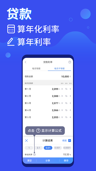 包括基本运算计算,函数运算计算、三角函数计算、反向汇率换算、角度弧度计算等,并且支持自定义公式输入。