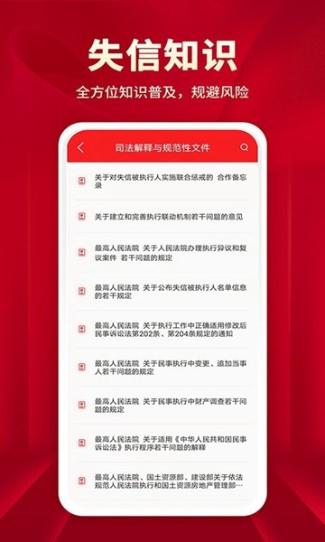 《执行信息公开文书使用信息查询软件》以“法律法规”为核心,通过文字图片形式展现相关法律信息,让用户在日常生活中快速了解法律法规,促进自己的利益最大化。同时,本应用程序还具备全文搜索功能,方便用户随时随地查阅相关信息。此外,本程序还具有全文检索功能,便于用户一键浏览相关信息。