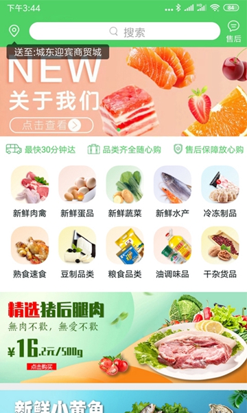 富城生鲜是目前国内领先的线上生鲜食材电商平台之一,它为广大的用户提供了一个便捷、安全、健康的生鲜服务。该软件提供了丰富多样的食材供应和优质的服务体验,包括新鲜蔬果、肉禽蛋品、米面粮油、酒水饮料等多种类型,用户可以轻松购买到各种生鲜商品,享受到高品质的农产品和服务。