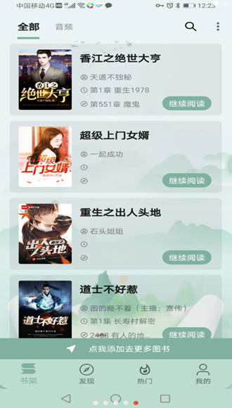 5、“爱读书”、“我”四大栏目中精选推荐每日新书上线,你想读的全都有.