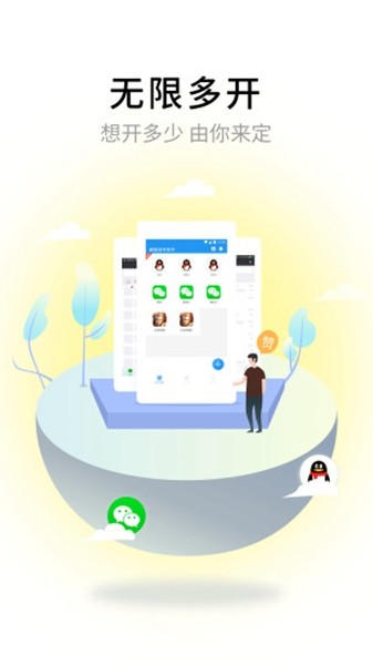 超级多开的APP,让您一部手机拥有多种应用与游戏资源,支持所有应用双开分身,独有内存管理机制,无限多开不卡顿,微信多开、QQ多开、陌声人多开,游戏多开、社交多开、社交多开、生活多开、购物多开等所有应用无限多开,独立安装包,占用内存少。