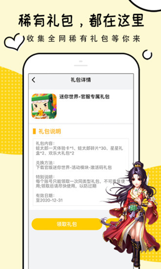 礼包君是专为游戏爱好者所创造的福利app不仅拥有丰富的游戏皮肤和道具之外,同时我们的用户也可以通过这款软件来和其他用户一起分享自己的游戏心得。当然,你也可以在礼包君是专为手游上下载礼包君是专为游戏爱好者所制作的福利app里领取到很多的福利奖励。