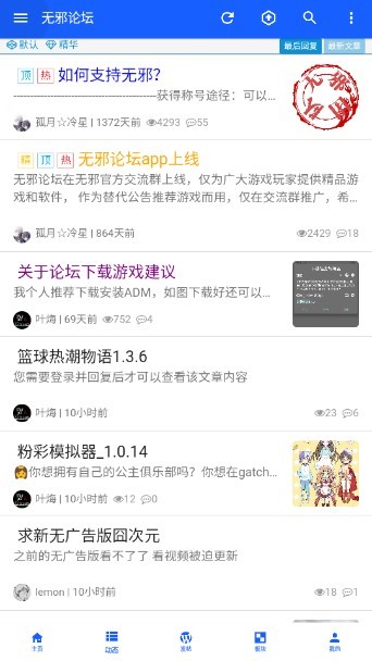无邪论坛APP是为广大游戏爱好者们量身定制的一款手机论坛分享和交流软件。其主要功能就是为玩家们提供海量的无恶搞游戏攻略与资讯,让每一位用户都能够轻松成为真正的神级高手!除此之外,该软件还拥有超多实用的小工具以及小工具供你使用哦!