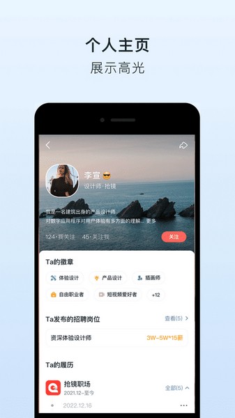 抢镜职场app是一款好用的求职招聘类软件。用户通过这款软件能够更加方便快捷地找工作,在这里有海量的岗位信息和内容可供查看了解哦。超多的职位都经过严格审核之后才发布的出来给用户进行选择了!在线与企业的HR聊天互动交流十分便捷。欢迎大家下载抢镜职场最新版体验。